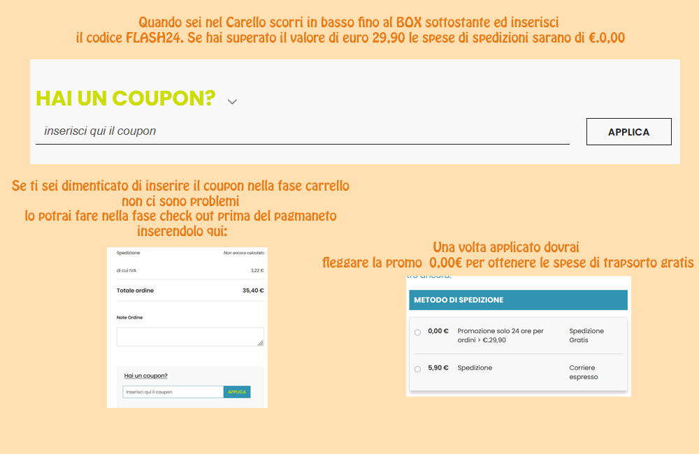 Inserisci il codice FLASH24 per azzerare le spese di trasporto.